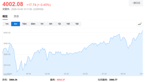 继续狂飙!现货黄金突破4000美元/盎司大关,金饰克价突破1160元