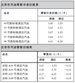 北京市发改委称,各成品油经营企业要严格按照国家规定的中准价格和浮动幅度执行,实行明码标价,在明显位置公布油品价格。