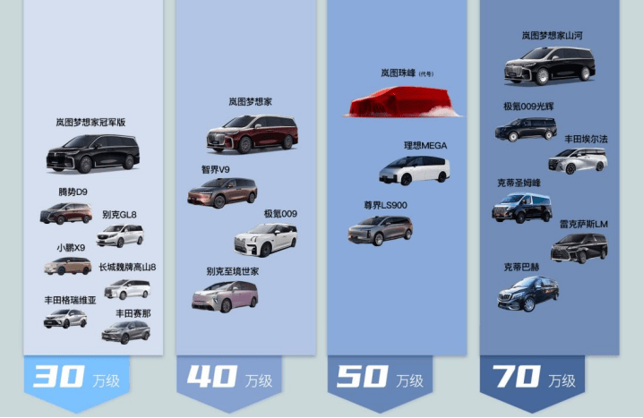 应该说从30万到70万,岚图梦想家完成了精准切分了MPV用户最为核心的几大场景,无论你是家用、高端商务接待,甚至体验最前沿的汽车科技,它都能够满足你,实现了对市场需求从基础到顶级的无死角覆盖。